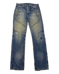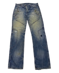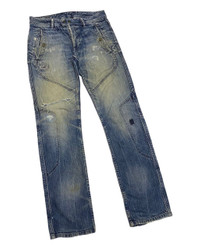 VINTAGE DIESEL DISTRESSED ZIGZAG PATCHWORK DENIM BIKER PANTS