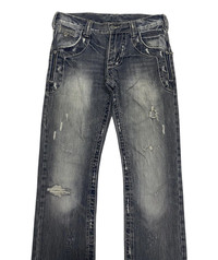 Archival Clothing - TAKA:Q JAPAN THRASHED DISTRESSED DENIM JEANS ZIPPED POCKET