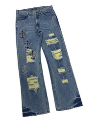 š„ARCHIVE TORNADO MART FLARE CROSS CHROME HEARTS DISTRESS FLARE DENIM CUSTOM MADE JEANS Tag : Tornado Mart Waist : 30 inches Outseam : 42 inches Inseam : 31.5 inches Front Rise : 10.5 inches Thigh : 12.5 inches Knee : 9 inches Leg : 9.5 inches Condition : Good Conditions Payment method via PayPal only. No cancellation allowed after made the payment. No refund/return allowed. All purchase is final. Will be shipped same day or day after purchase Additional Policies and FAQ: Pls read all the description before buying. This is pre-owned/used authentic collections, so very tiny flaws are common. Item is stored in a dust-free, smoke-free, and hygienic environment. We guarantee satisfaction and authenticity. As usual, I'm more than happy to entertain offers so fire away. Also, I can discount for multiple purchases. I'm more than happy to provide any additional information or answer any questions