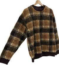 VINTAGE BENO BROWN TARTAN WOOL SWEATSHIRT