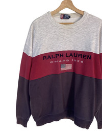 š„VINTAGE CHAPS RALPH LAUREN EMBROIDERY TRICOLOUR SWEATSHIRT
