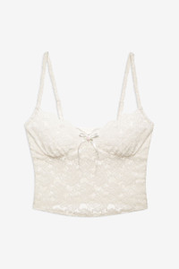 Crafted in our cloud-like Everyday Lace, the Cloud Lace white cami top features a scalloped edge neckline and a fitted body with spot ruching at the cups. This lace camisole is finished with a sweet rosette at the neckline—pair it with the matching Cloud Lace Short for a cozy pajamaset. Style Notes - Unlined - Decorative elastic Fabric + Care - Crafted in 60% polyamide, 30% polyester, 10% elastane - Hand wash cold - Only non-chlorine bleach - Do not wring or twist - Line dry - Do not iron - Do not dry clean