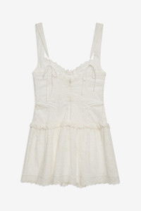 The Dreamy Daisy Mini Dress is what summer dreams are made of. Crafted in 100% cotton, this white eyelet dress exudes romance with its underwire cups, drop waist silhouette, and contrast eyelet trims. Style Notes - Fully lined - Functional adjustable shoulder straps that tie a t the back - Invisible zipper at the center-back - Non-functional button details at the placket Fabric + Care - Crafted in 100% cotton - Lining is made of 100% cotton - Machine wash cold - Lay flat to dry - Cool iron ok - Ok to dry clean