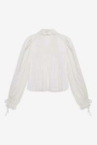 Go from sun-drenched mornings to balmy nights in the ultra-feminine Edie white eyelet top, featuring a three-quarter length puff sleeve and gathered body. This cropped blouse spotlights a scalloped edge collar and sleeve opening ruffle—pair it with the matching Edie Eyelet Bloomer Short. Style Notes - Unlined - Functional buttons at the center-front Fabric + Care - Crafted in 100% cotton - Machine wash cold - Lay flat to dry - Cool iron ok - Ok to dry clean