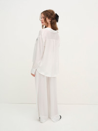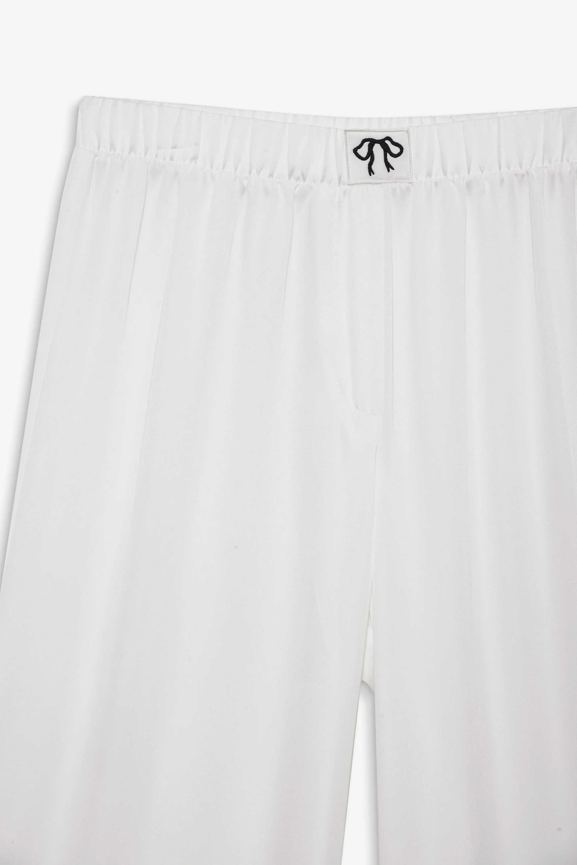 Savor the quiet magic of winter rituals with the Everyday white pajama pant. Crafted in stretch satin, these pj pants are cut to a loose fit and feature an embroidered bow motif. For a matching pj set, pair it with the Everyday PJ Top. Fabric + Care - Crafted in 60% polyester, 40% recycled polyester - Hand wash cold, do not wring or twist - Line dry only