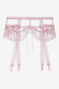 Become the ultimate Valentine’s Day Muse with the Ily Embroidered garter belt–a pink lace garter belt adorned with dainty floral embroidery, slotted ribbon trims, romantic rosettes atop satin ribbon bows, and waist cut-outs for a sultry yet sweet look. Style Notes - Unlined - Functional garter clips - Swan hook and skinny tie at back waist Fabric + Care - Crafted in 100% recycled polyester - Embroidery is made of 100% polyester - Hand wash cold - Do not wring or twist - Line dry - Do not iron - Do not dry clean