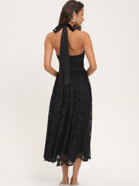 Dress for chic winter nights with our best-selling Lakeside lace mini dress–a littleblack dress crafted in a classic floral lace and adorned with scallop hems. This high neck dress features a low open V-shaped back for an effortlessly feminine chic look. Fit Notes - True to size Style Notes - Fully lined in chiffon - Side seam darts at the bust - Invisible zipper at side seam Fabric + Care - Crafted in 64% recycled polyester, 36% polyester - Lining is made of 100% polyester - Dry clean only