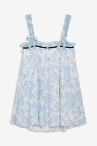 The Oliver blue mini dress is an everyday take on a traditional lingerie babydoll dress—designed for the immaculate muse. Crafted in chiffon with a blue rose print, it features a contrast chiffon ruffle trim, ruched shoulder straps, and black binding at the neckline. This short dress is also adorned with fixed double-layer bows at the back strap joins.