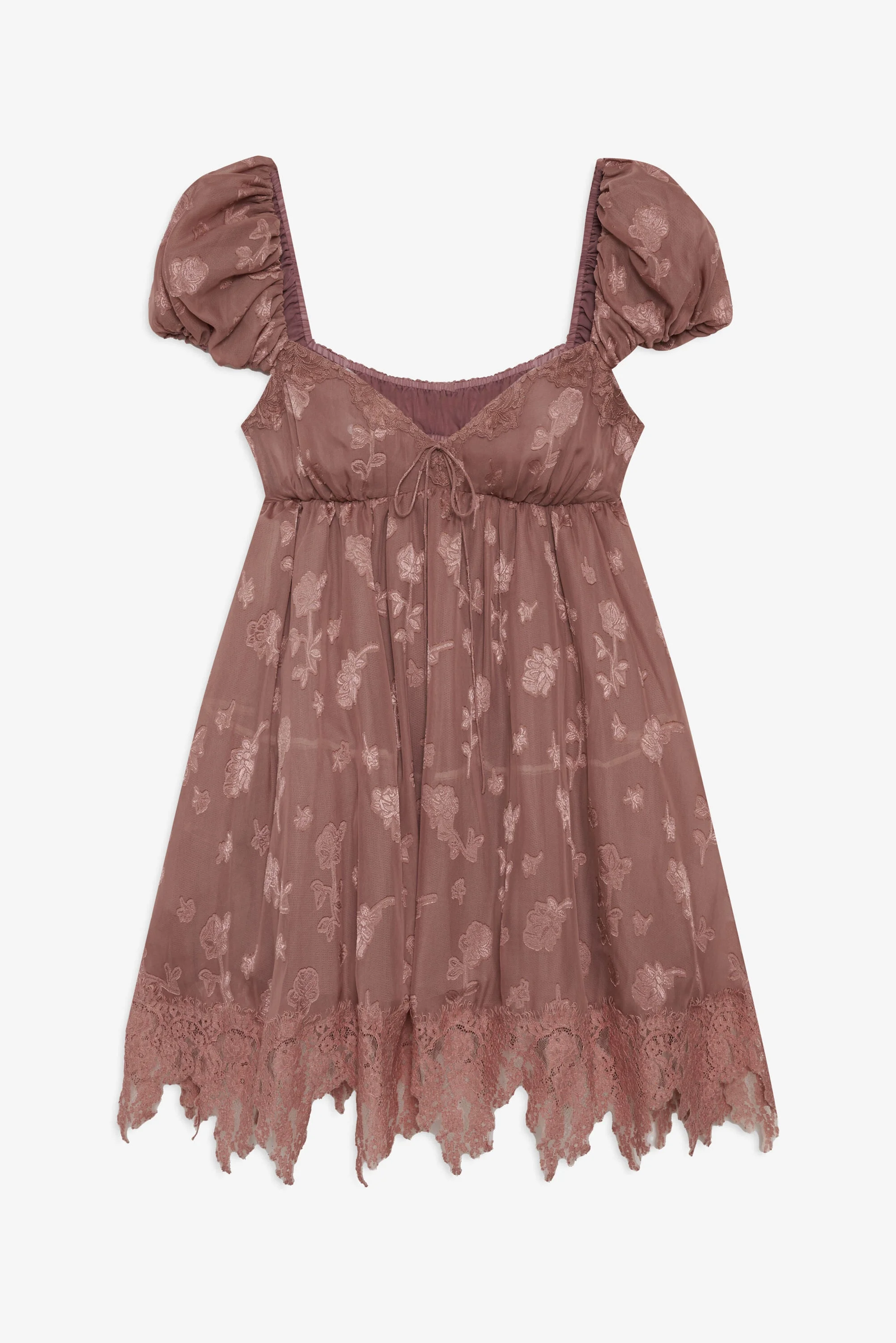 Embrace the beauty of fall with the Olivia puff sleeve mini dress—an autumnal babydoll mini dress crafted in a sheer satin burnout chiffon and adorned with lace trims. Fit Notes - True to size Style Notes - Fully lined - Slip-on Style Fabric + Care - Crafted in 100% polyester - Lining 1 is made of 100% recycled polyester - Lining 2 is made of 100% polyester - Dry clean only