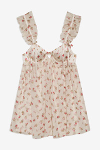 Bridge the seasons beautifully with the Poppy floral mini dress—a cream mini dress rendered in an autumnal floral print. This babydoll dress features underwire cups, ruffled straps, and a full gathered skirt. Style Notes - Fully lined - Invisible zipper at center-back - Keyhole at back neckline with hook and eye closures Fabric + Care - Crafted in 100% polyester - Lining is made of 97% recycled polyester, 3% spandex - Contrast is made of 97% recycled polyester, 3% spandex - Dry clean only