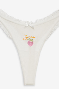 Featuring 3 thong panties in alternating fabrics, this panty set exudes the spirit of summer with individual artworks. Each sexy thong is finished with crochet and ribbon trim details. Style Notes - Includes 3 thongs Fabric + Care - Crafted in 98% polyester, 2% elastane - Gusset is made of 100% viscose - Hand wash cold - Only non-chlorine bleach - Do not wring or twist - Line dry - Do not iron - Do not dry clean