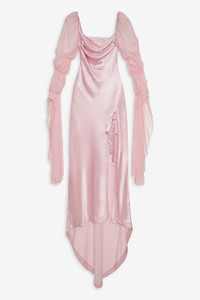 Angel energy. Style Notes - Vintage-inspired mini dress - Draped cowl-neck at front and back - Chiffon elastic high-low sleeves - Tulle shoulder pads - Center-back button closure - Invisible zipper closure Fabric + Care - Crafted in 53% ecovero viscose, 47% viscose - Contrast is made of 100% recycled polyester - Eco dry clean advised to avoid cleaners that use harmful chemicals like "perc."