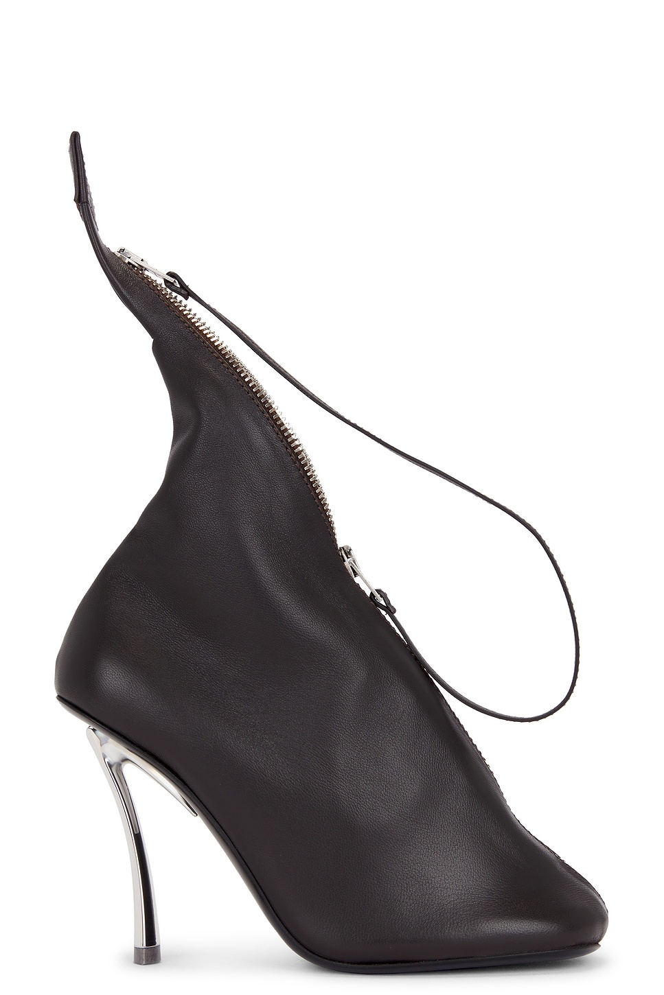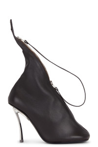 Details - Leather upper and sole - Made in USA - Dual direction front zipper closure with oversized pull - Leather lining - Round toe with stiletto heel - Approx 100mm/ 4 inch heel - Approx 150mm/ 6 inch shaft - Our Style No. ACNE-WZ266 - Manufacturer Style No. AD0784