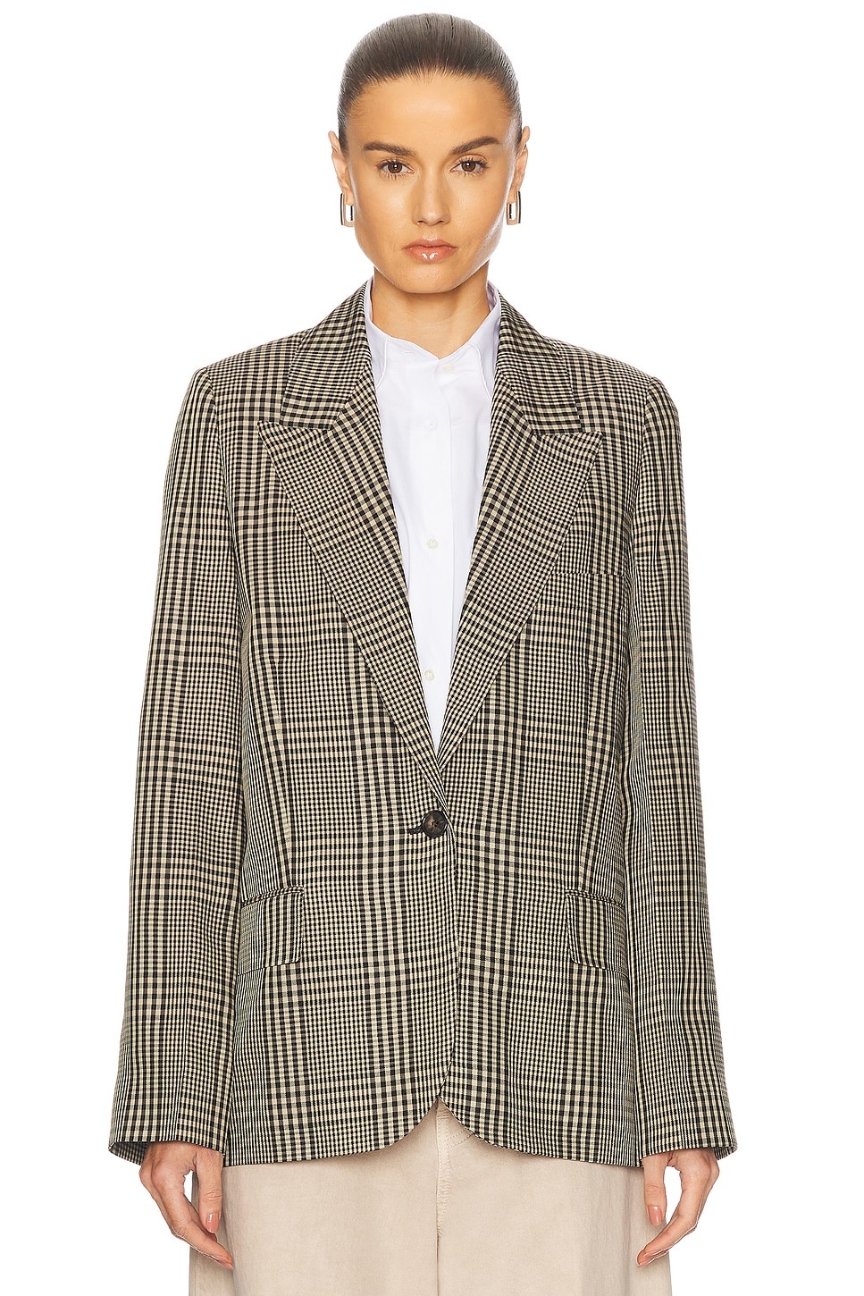 Details - Self: 52% viscose, 48% wool - Lining: 100% viscose - Made in Portugal - Dry clean only - Singular front button closure - Light padding at shoulders - Breast seam pocket and front flap pockets - Twill fabric - Our Style No. ACNE-WO422 - Manufacturer Style No. AH0304