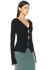Button-up rib cardigan - Black