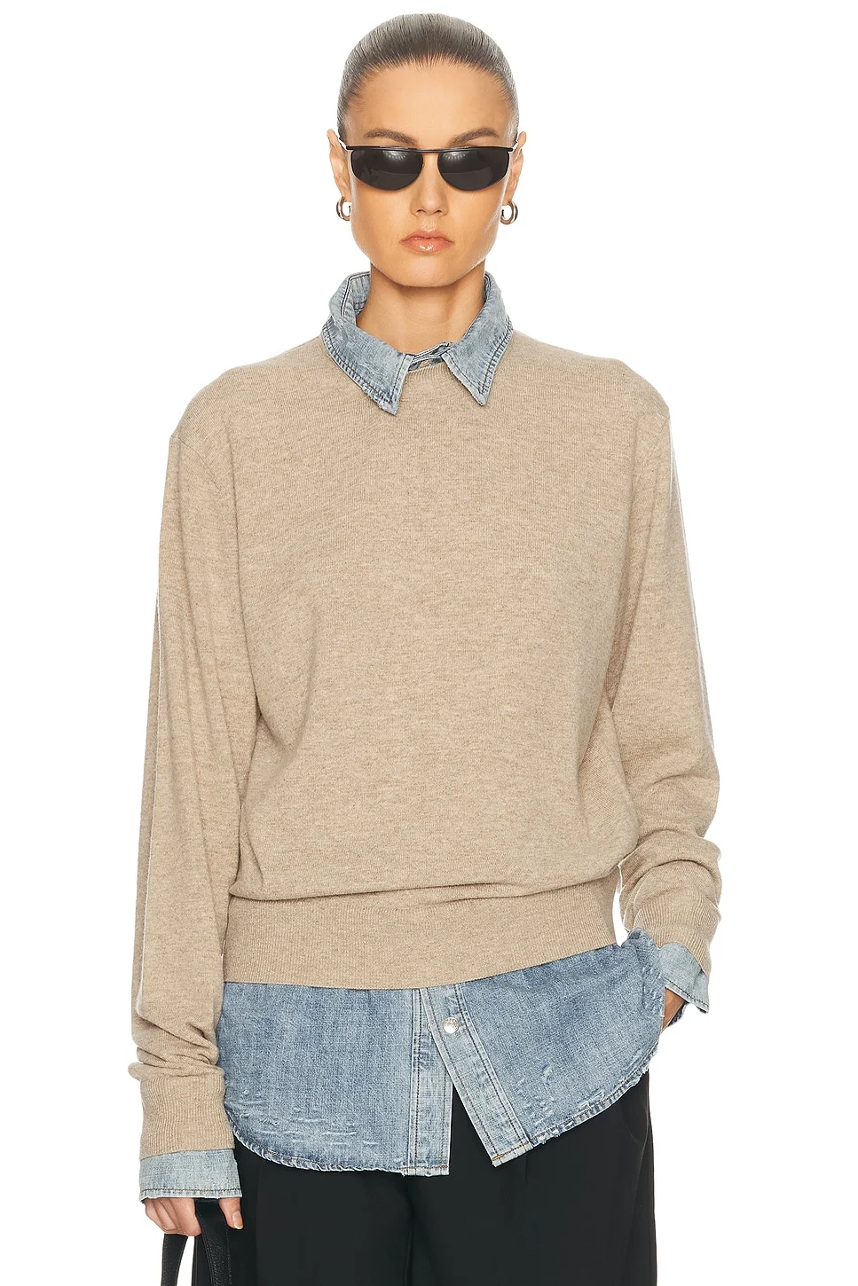 Details - Self: 100% wool - Contrast Fabric: 100% cotton - Hand wash - Pull-on styling - Attached layered denim design - Intentional fading and distressing - Snap button cuffs - Ribbed trim - Midweight knit fabric - Made in China - Our Style No. ACNE-WK622 - Manufacturer Style No. A60670