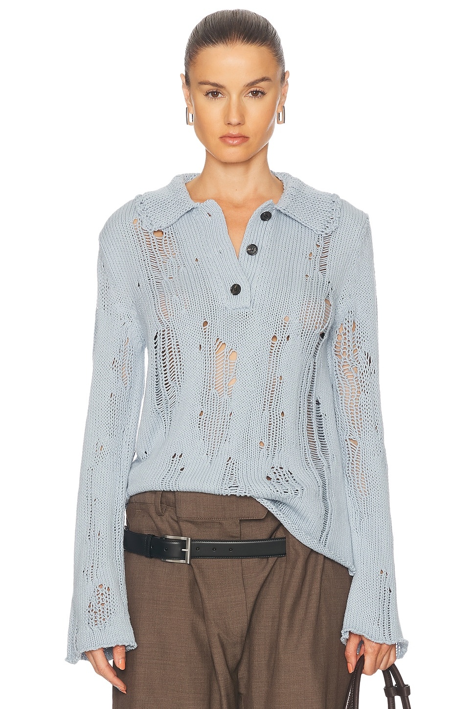 Details - 85% cotton, 15% wool - Made in Italy - Hand wash - Partial front button closure - Intentionally distressed knit fabric - Our Style No. ACNE-WS577 - Manufacturer Style No. A60566