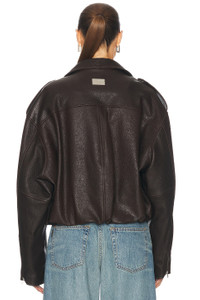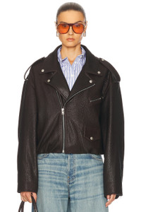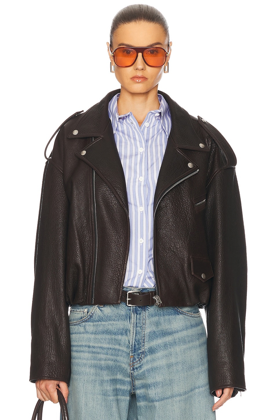 Details - Self: 100% lambskin - Lining: 100% viscose - Made in Turkey - Professional leather clean only - Exposed front zipper closure - Breast and side zipper pockets - Singular front flap pocket - Silver-tone logo embossed hardware at back - Zipper cuffs - Genuine leather - Our Style No. ACNE-WO420 - Manufacturer Style No. A70192