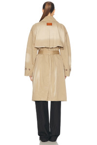 Details - Self: 100% cotton - Lining: 100% cow leather - Made in Romania - Dry clean only - Double breasted front button closure with detachable belt - Buttoned flap pockets - Storm flap - Distressed trim - Our Style No. ACNE-WO428 - Manufacturer Style No. A90630