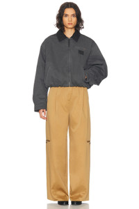 Details - Self 1: 100% cotton - Self 2: 100% cow leather - Made in Romania - Hand wash - Zip fly with button closure - 6-pocket styling - Back leather logo detail - Lower leg welt pockets with button closure - Front pleated twill fabric - Our Style No. ACNE-WP214 - Manufacturer Style No. AK0875