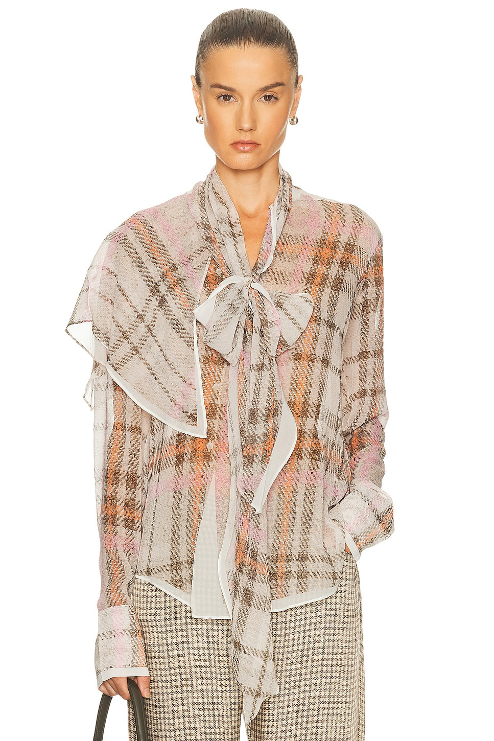 Details - 100% silk - Dry clean only - Pull-on styling with tie-up accent at neckline - Back logo detail - Chiffon fabric - Garment is intentionally sheer, undergarments will show through - Made in China - Our Style No. ACNE-WS594 - Manufacturer Style No. AC0737
