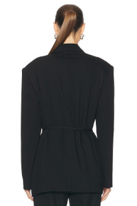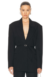 Details - Self: 65% viscose, 35% wool - Lining: 100% viscose - Made in Portugal - Dry clean only - Adjustable waist belt with buckle closure - Padded shoulders - 3-pocket styling - Crepe fabric - Our Style No. ACNE-WO392 - Manufacturer Style No. AH0294