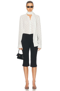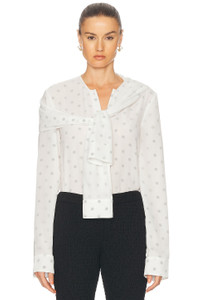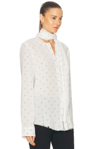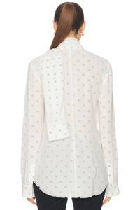 Details - 100% polyester - Made in China - Dry clean only - Front button closure - Scarf design at collar - Buttoned cuffs - Georgette fabric with slit detail at front and back hem - Our Style No. ACNE-WS578 - Manufacturer Style No. AC0721