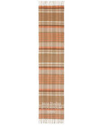 Beige & Pink Wide Check Logo Scarf