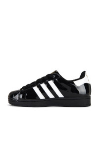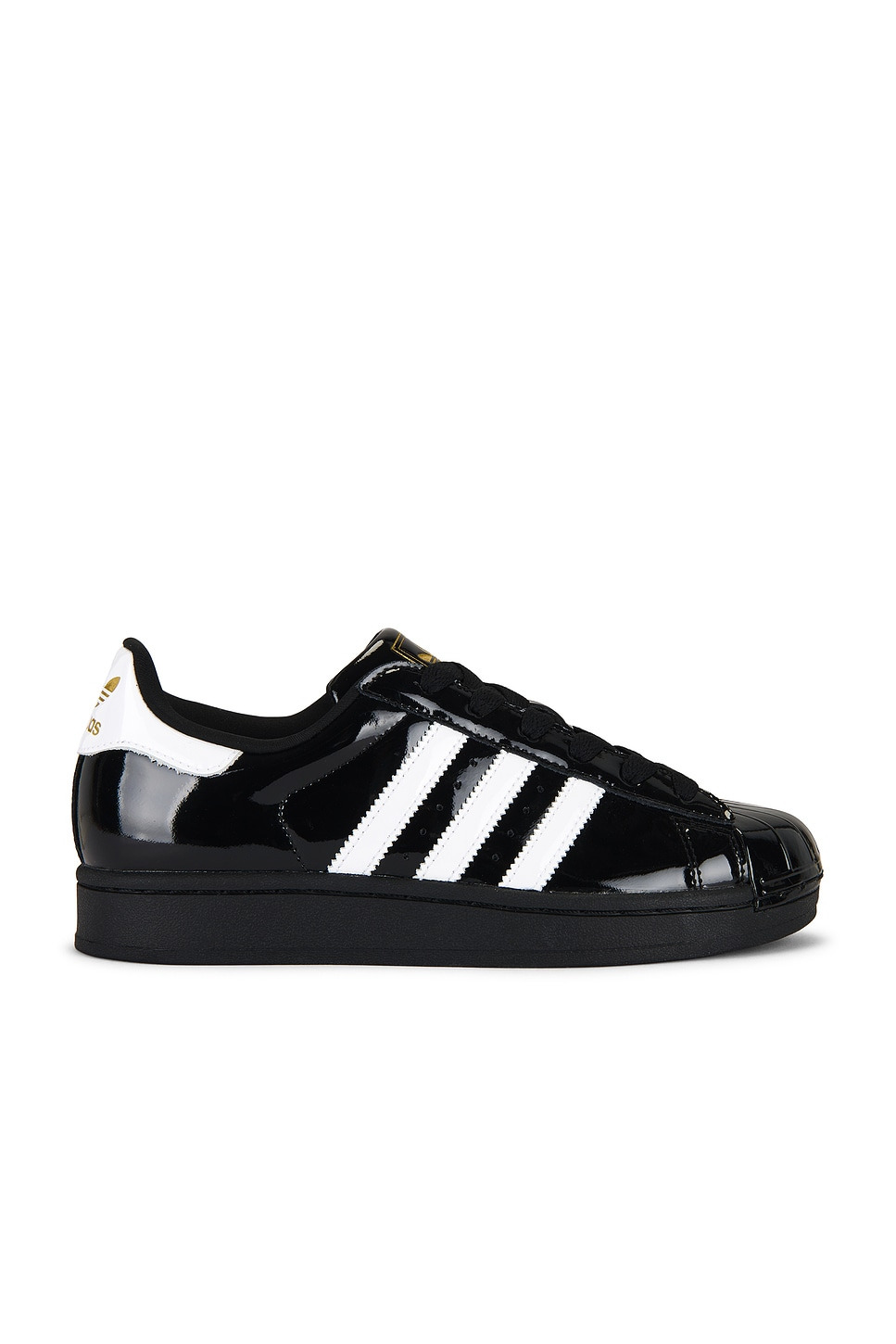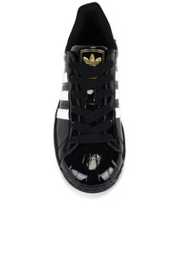 Details - Patent leather upper with rubber sole - Lace-up front - Adidas printed logo at tongue and back counter - Rubber shell toe design - Signature adidas side stripes - Made in Indonesia - Our Style No. ADIO-WZ162 - Manufacturer Style No. JS4009