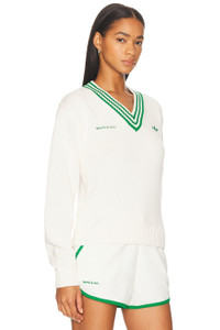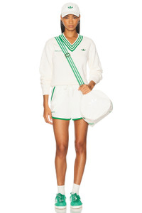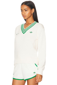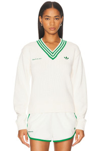 WOMEN'S ADIDAS X SPORTY & RICH V-NECK SWEATER - OFF WHITE/NIGHT NAVY