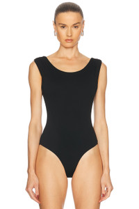 Details - 80% polyamide, 20% elastane - Made in USA - Machine wash - Gusset button snap closure - Deep V-neckline at back with gathered fabric detail - Jersey fabric - Our Style No. AGOL-WS308 - Manufacturer Style No. A7343-1460