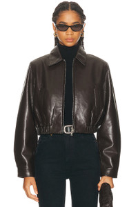ESSIE RECYCLED LEATHER CROPPED JACKET IN CHOCOLATE