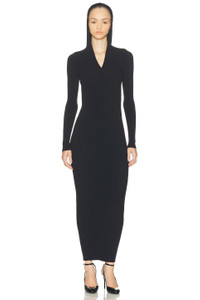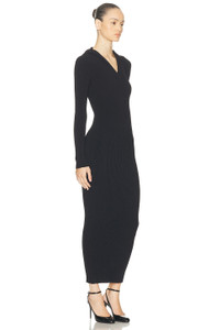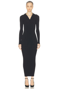 hooded ribbed midi dress