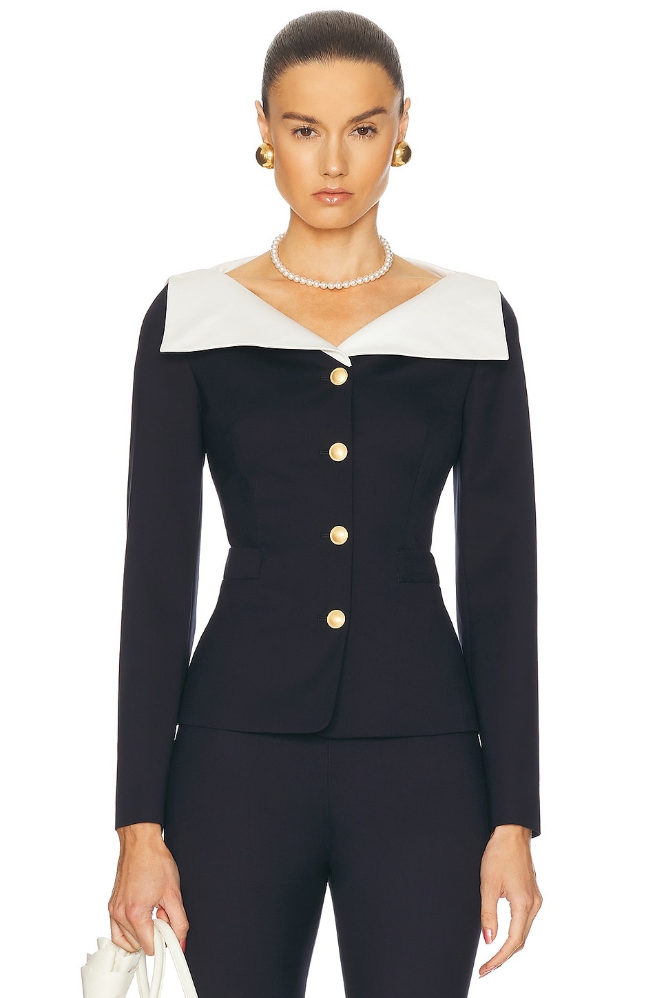 Details - Self 1: 97% fleece wool, 3% elastane - Self 2: 88% cotton, 12% silk - Lining: 95% cupro, 5% elastane - Made in Italy - Dry clean only - Front gold-tone button closure - Front faux welt pockets - Midweight twill fabric - Item not sold as a set - Our Style No. ARIF-WO54 - Manufacturer Style No. FABX3993