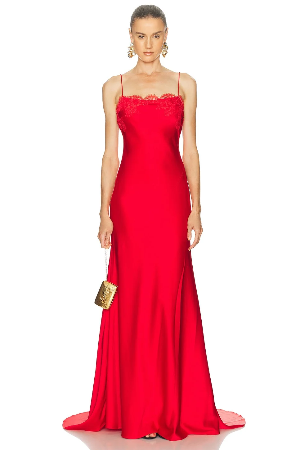 Lace-trimmed crêpe satin gown