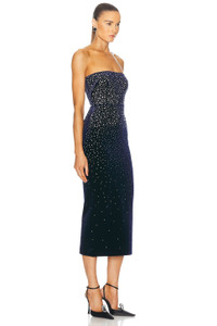 Details - Self: 93% polyester, 7% elastane - Lining: 80% acetate, 20% polyester - Made in China - Dry clean only - Double lined - Hidden back zipper closure - Boned sides - Midweigh crystal embellished velvet fabric - Our Style No. APEF-WD211 - Manufacturer Style No. D1392RE25