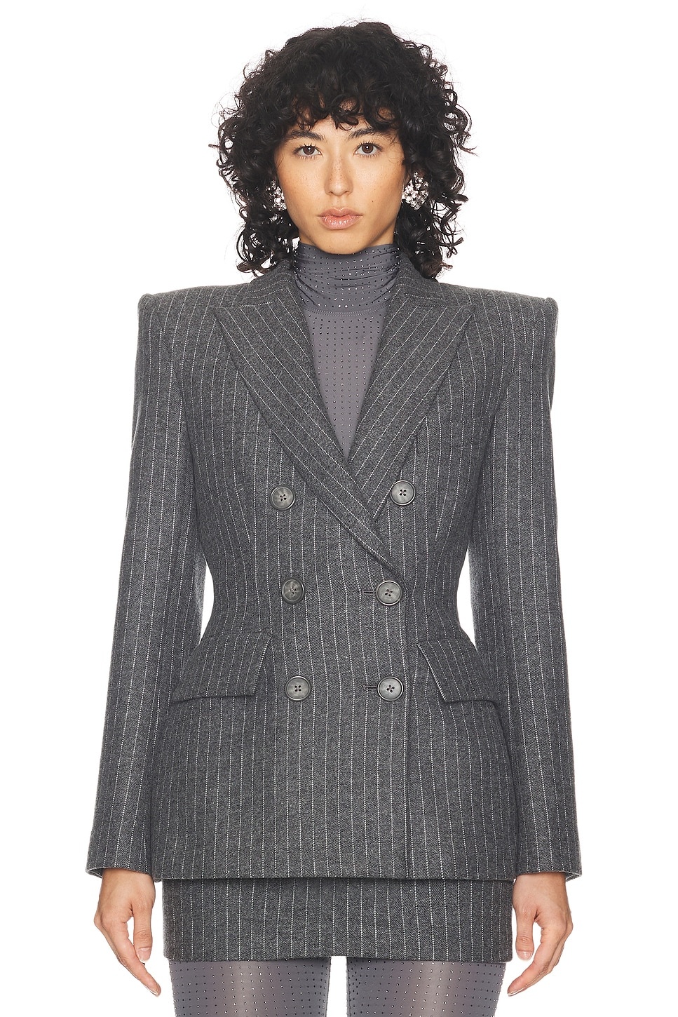 pinstriped double-breasted blazer