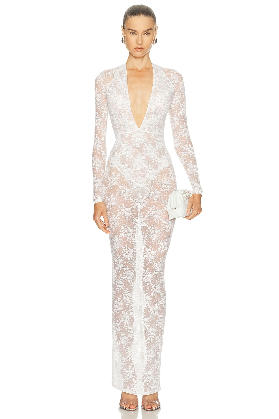Details - 90% polyamide, 10% elastane - Dry clean - Unlined with attached bodysuit lining and gusset snap button closure - Hidden back zipper closure - Sheer lace fabric - Made in Australia - Our Style No. APEF-WD262 - Manufacturer Style No. D1515WE26