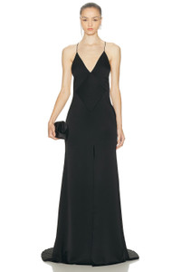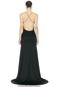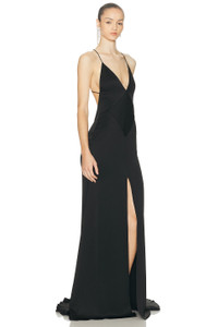 Details - 80% acetate, 20% polyester - Dry clean only - Unlined - Hidden back zipper closure - Deep scoop neckline at back - Satin fabric with high front slit - Made in China - Our Style No. APEF-WD250 - Manufacturer Style No. D1518PF25
