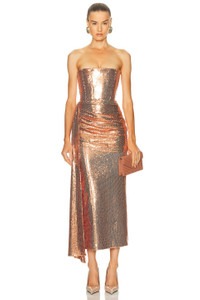 Draped Sequinned Midi Dress bronze