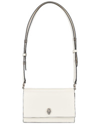 Details - Leather exterior and interior - Made in Italy - Flap top with magnetic button closure and silver-tone skull at front - One main compartment - Interior card slot - Adjustable leather shoulder strap - Measures approx 7.25" / 18 cm W x 4.75" / 12 cm H x 2" / 5 cm D - Shoulder strap with a 12" / 30 cm drop - Our Style No. AMCQ-WY149 - Manufacturer Style No. 757626-1BLCM-9210