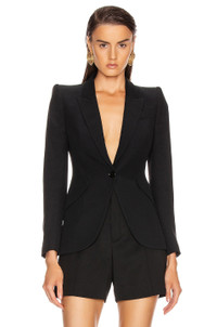 Details - Self: 52% viscose, 48% acetate - Lining: 100% cupro - Made in Italy - Dry clean only - Button front closures - Side flap pockets - Padded shoulders - Back vent detail - Our Style No. AMCQ-WO54 - Manufacturer Style No. 585442QEAAA