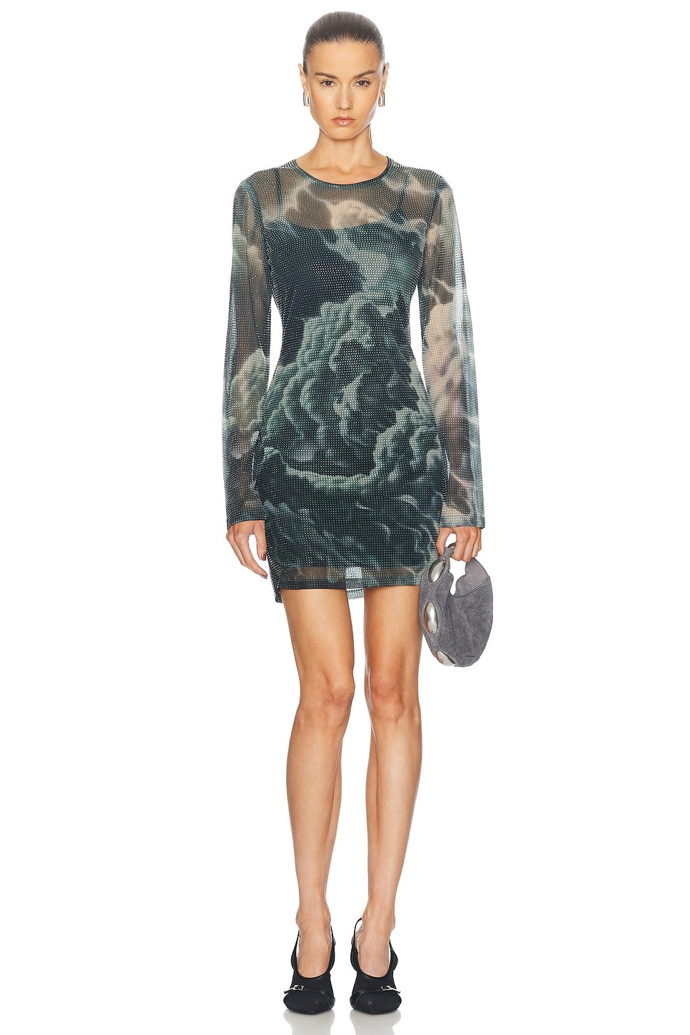 crystal hotfix cloud-print sheer minidress in organza jersey