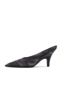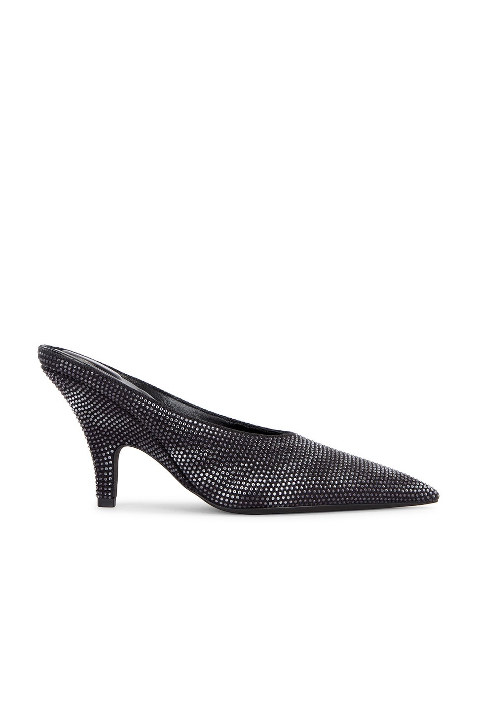 Details - Crystal-embellished textile upper with leather sole - Made in China - Slip-on styling - Leather lining - Pointed toe with kitten heel - Approx 90mm/ 3.5 inch heel - Our Style No. AWAN-WZ431 - Manufacturer Style No. 30424P018