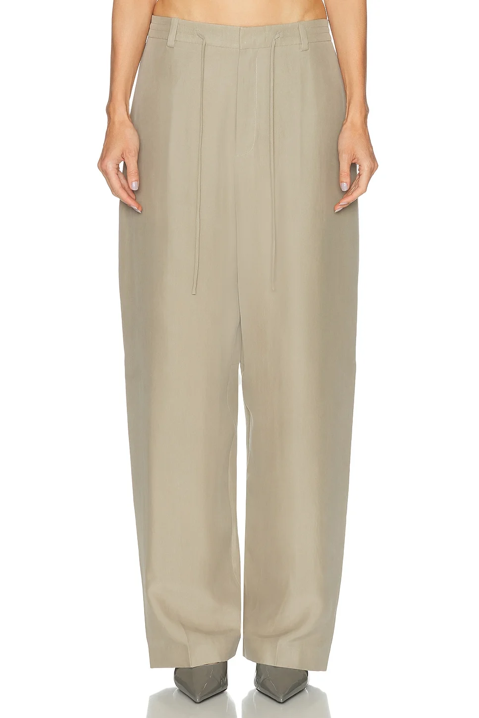 Details - Self: 100% silk - Lining: 100% polyester - Made in China - Hand wash only - Front drawstring fastener - Zip fly with button and hook closure - Lightweight satee fabric - Side seam pockets - Our Style No. AWAN-WP188 - Manufacturer Style No. 1WC2264519