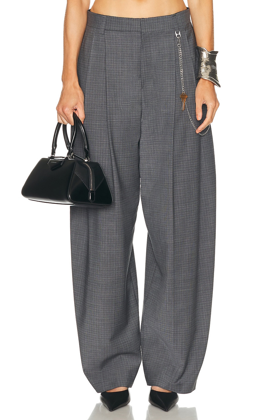 Details - Self: 86% wool, 10% polyamide, 4% elastane - Lining: 100% viscose - Dry clean only - Zip fly with double hook and bar closure - Side seam pockets and back faux welt pockets - Attached silver-tone chain with key accents and lobster clasp closure - Pleated design - Heavyweight twill fabric - Item not sold as a set - Made in China - Our Style No. AWAN-WP172 - Manufacturer Style No. 1WC3254871