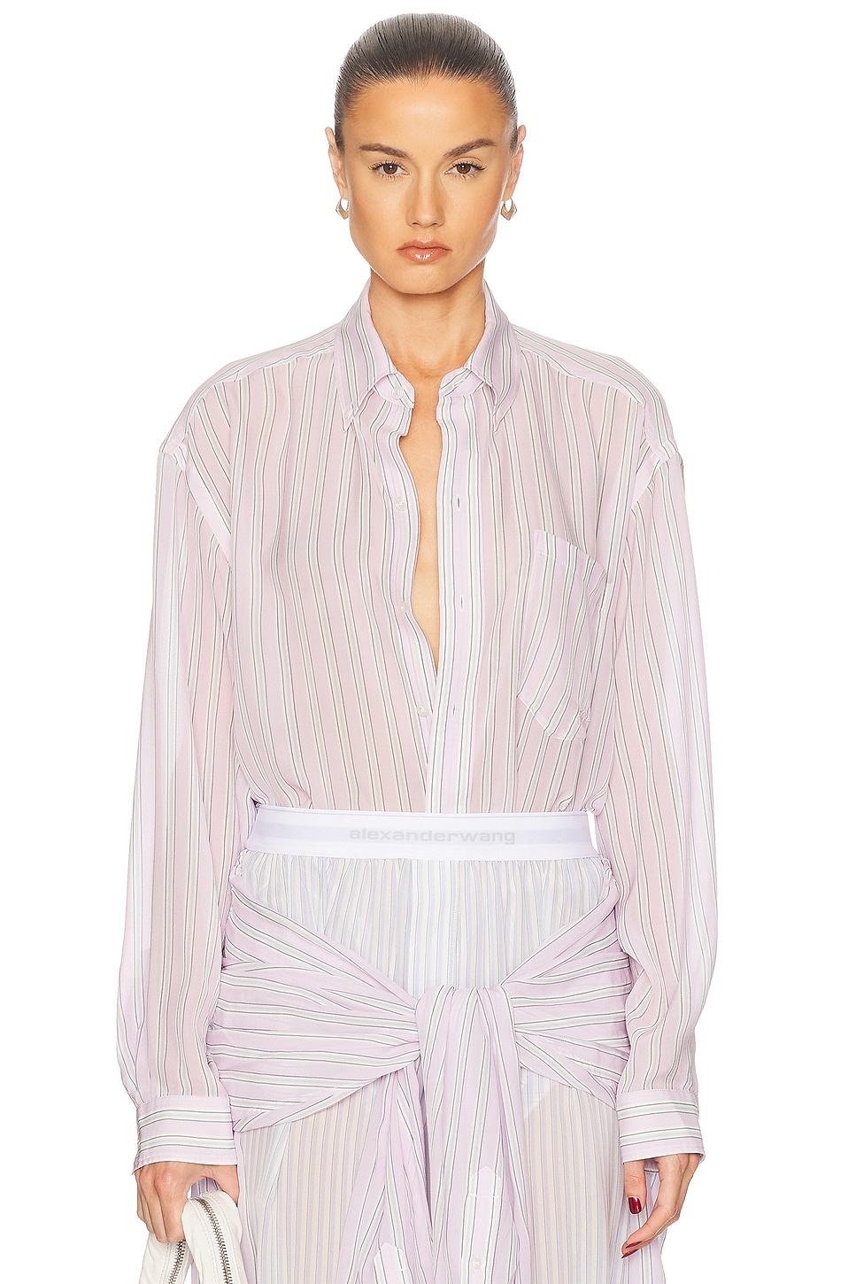 Details - 100% silk - Made in China - Dry clean only - Front button closure - Breast patch pocket with tonal logo detail - Buttoned cuffs - Lightweight crepe fabric - Item not sold as a set - Our Style No. AWAN-WS421 - Manufacturer Style No. 1WC2251012