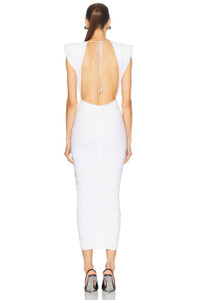 Details - 96% viscose, 4% elastane - Dry clean only - Unlined - Back tie-up closure - Padding at shoulders - Cut-out detail at back - Gathered fabric at front - Jersey fabric with ruching - Made in Portugal - Our Style No. ALEF-WD249 - Manufacturer Style No. 252DR2063