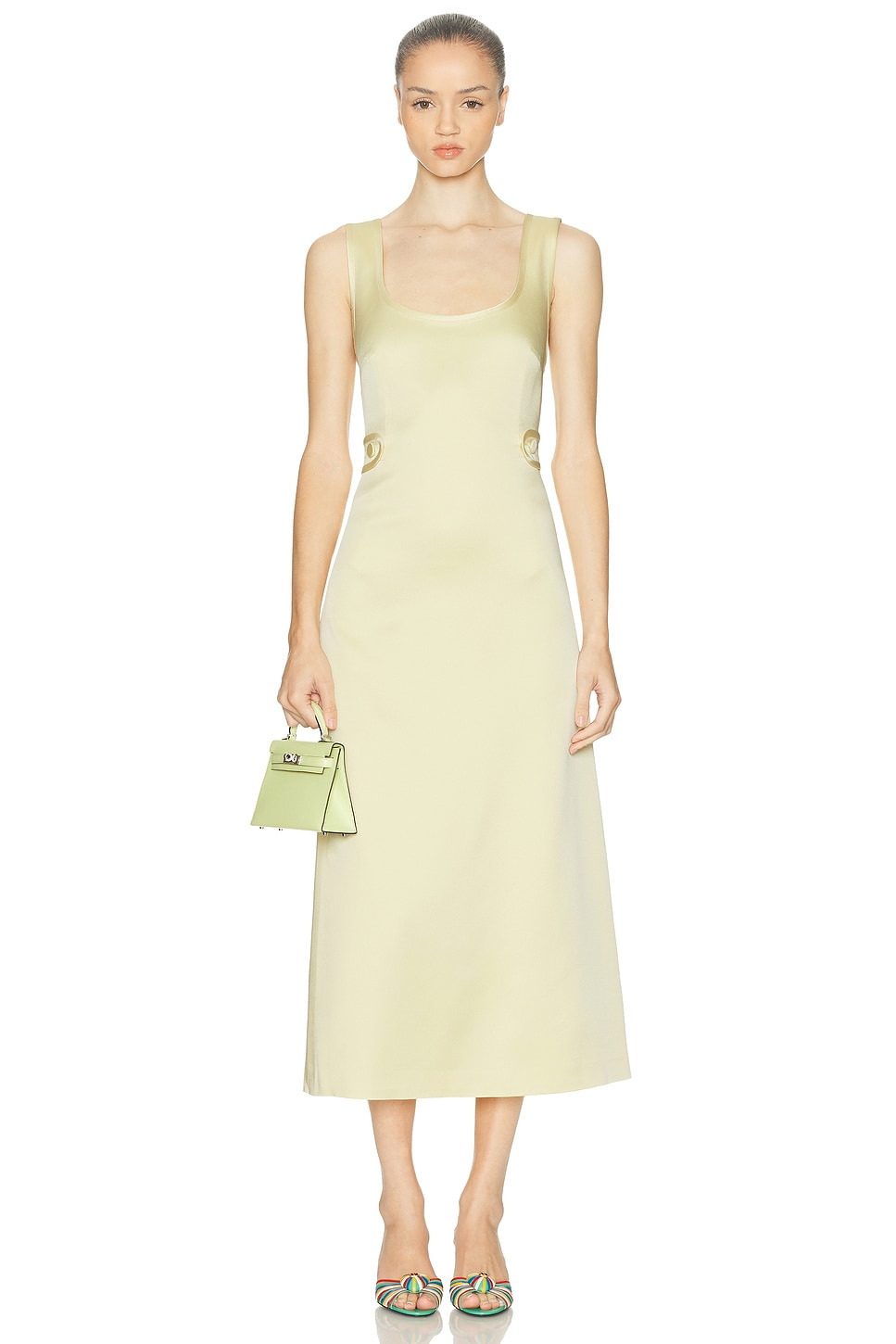 Details - Self: 78% acetate, 22% viscose - Lining: 100% polyester - Dry clean only - Fully lined - Hidden back zip closure - Back straps with button closure - Heavyweight crepe fabric - Made in China - Our Style No. ALXF-WD589 - Manufacturer Style No. A2250402-0605
