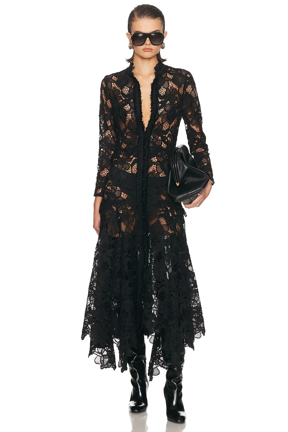 Details - Self: 100% polyester - Lining: 95% polyester, 5% elastane - Made in China - Dry clean only - Detached slip lining for optional styling - Front button-down closure - Midweight guipure lace textile with tweed trims - Asymmetric hem - Our Style No. ALXF-WD616 - Manufacturer Style No. A3250430-0789